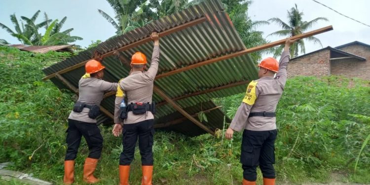 “Kita sudah menurunkan personil ke lokasi bencana dan berkoordinasi dengan pihak kewilayahan (Polsek Pagar Merbau) guna membantu dan gotong royong dalam perbaikan seng maupun atap rumah warga yang lepas karena tertiup angin,” ujar Kompol Heriyono.