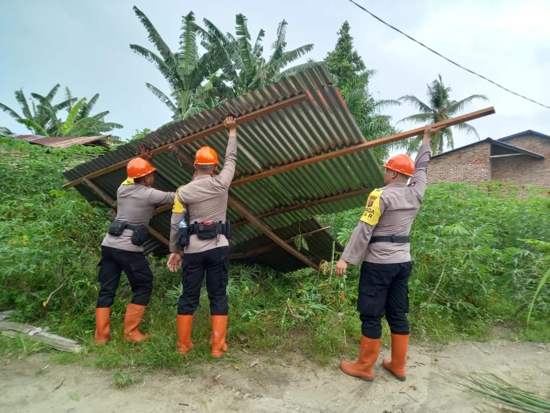 “Kita sudah menurunkan personil ke lokasi bencana dan berkoordinasi dengan pihak kewilayahan (Polsek Pagar Merbau) guna membantu dan gotong royong dalam perbaikan seng maupun atap rumah warga yang lepas karena tertiup angin,” ujar Kompol Heriyono.