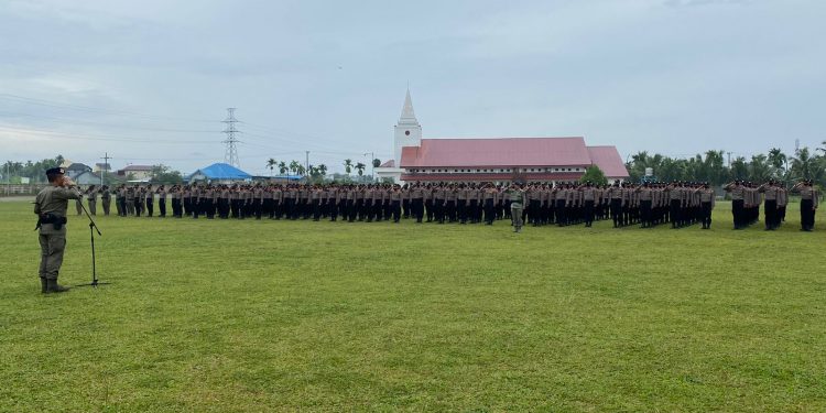 Sat Brimob Sumut – Komandan Satuan (Dansat) Brimob Polda Sumut Kombes Pol Christiyanto Goetomo, S.I.K.,S.H.,M.H., pimpin apel sekaligus berikan materi kemampuan Brimob kepada Bintara angkatan 46 lulusan SPN Hinai Polda Sumut T.A.2022, Rabu (3/8/22).
