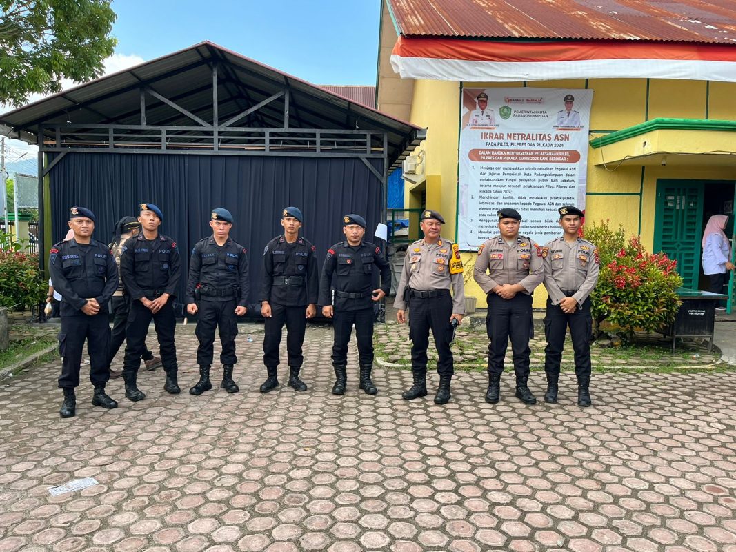 Personil Satuan Brimob Polda Sumut BKO Polres Padangsidempuan ini dipimpin oleh Wadanki Gas, Iptu Halomoan Sirait, S.H. yang melaksanakan patroli untuk memantau dan memastikan tidak terjadi gangguan ataupun kerumunan yang dapat mengganggu jalannya proses rekapitulasi perhitungan suara.