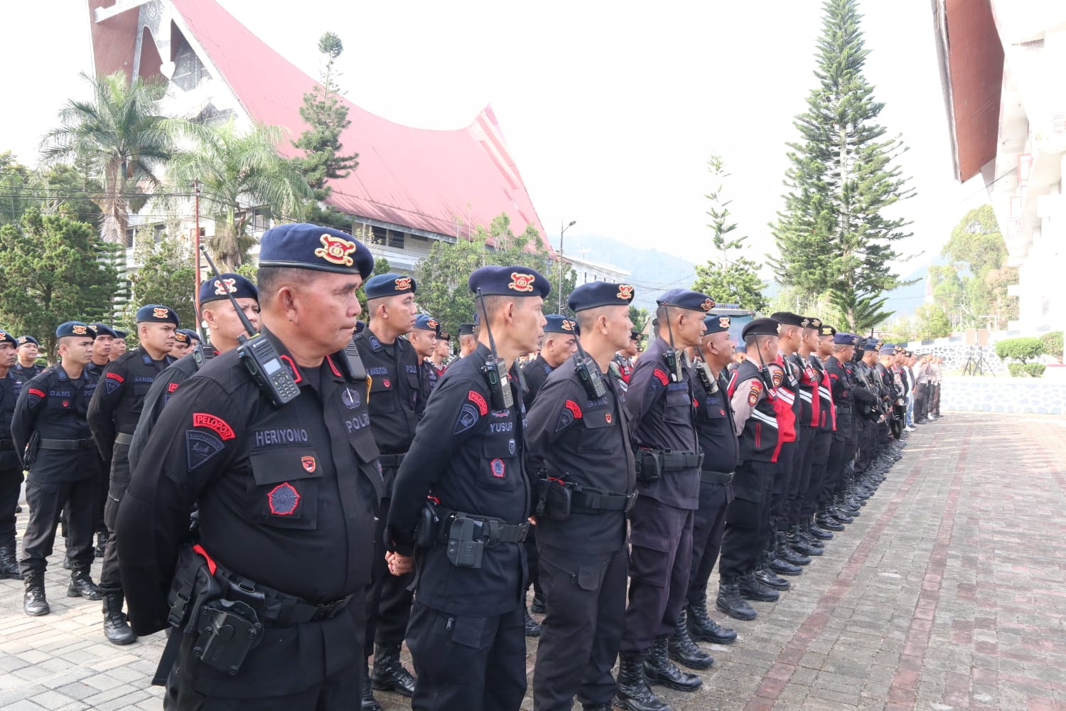 Dan turut hadir para PJU Polda Kombes Pol. Rudi Rifani, S.I.K. Dir Polairud Polda Sumut, Kombes Pol Muji Ediyanto S.H., S.I.K. Dir Lantas Polda Sumut, Kapolres Toba AKPB Wahyu Indra Jaya S.H., S.I.K. dan para Kasatagas 1 sampai dengan 8 dan Pleton pasukan dilapangan apel kantor Bupati Toba.